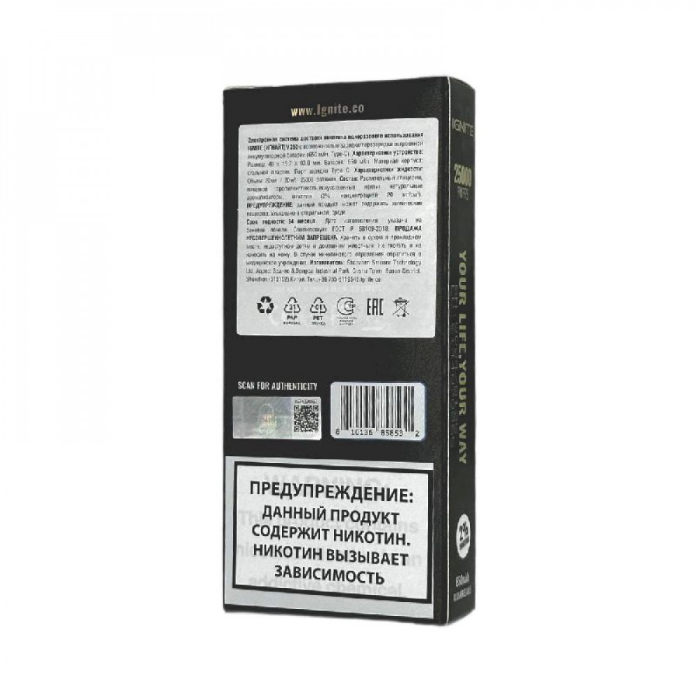 Электронная сигарета Ignite V250 Gold 25000 - Grape Ice (Виноград лёд) - купить в Климовске